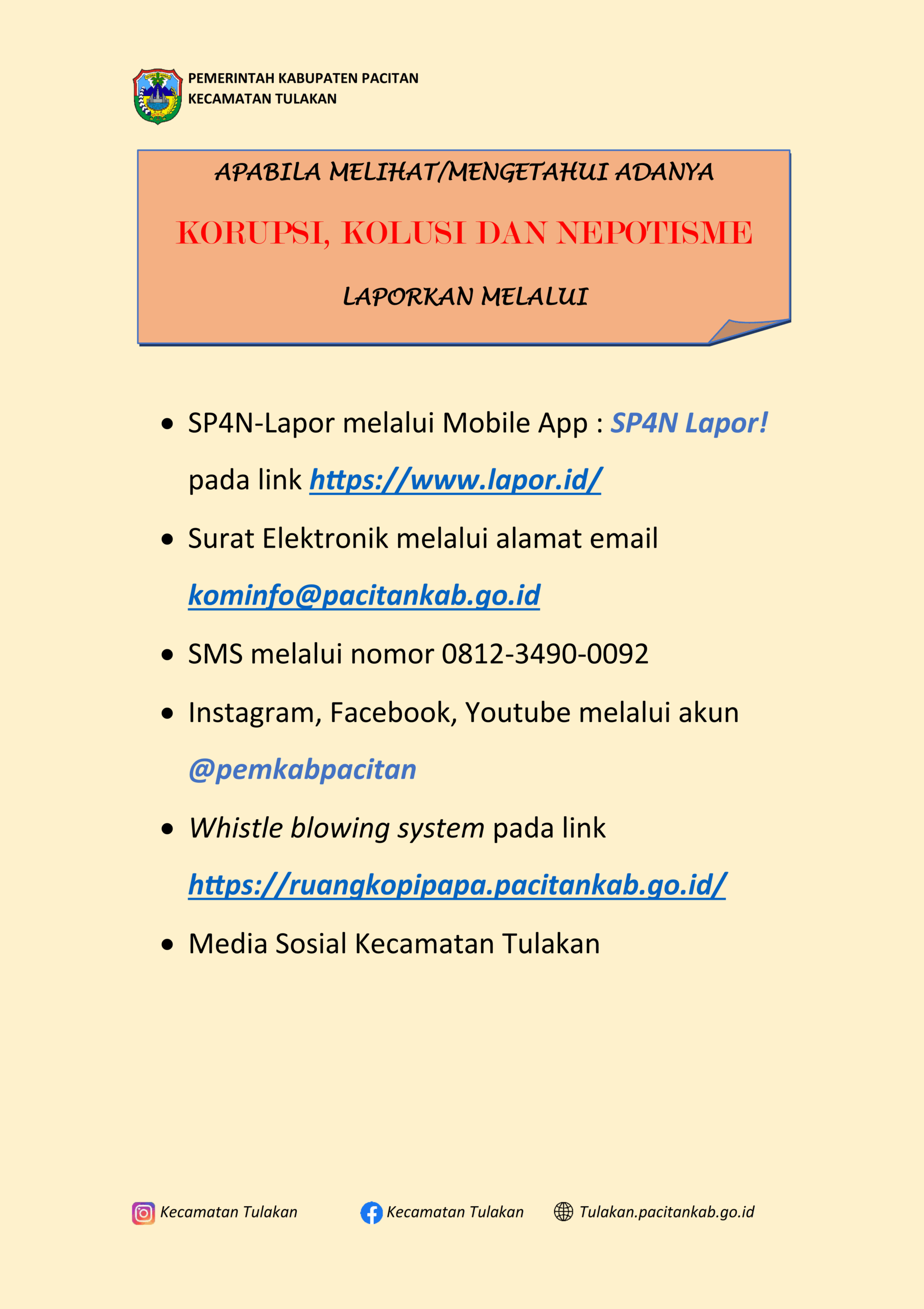SP4N-LAPOR! (Sistem Pengelolaan Pengaduan Pelayanan Publik Nasional) adalah aplikasi yang disediakan pemerintah sebagai saluran resmi masyarakat untuk menyampaikan aspirasi, keluhan, maupun laporan terkait pelayanan publik. Melalui sistem ini, setiap pengaduan akan diteruskan secara berjenjang kepada instansi berwenang sehingga penanganannya dapat dilakukan lebih cepat, transparan, dan akuntabel. Dengan SP4N-LAPOR!, masyarakat dapat berpartisipasi aktif dalam pengawasan sekaligus turut mendorong peningkatan kualitas pelayanan publik di Indonesia.